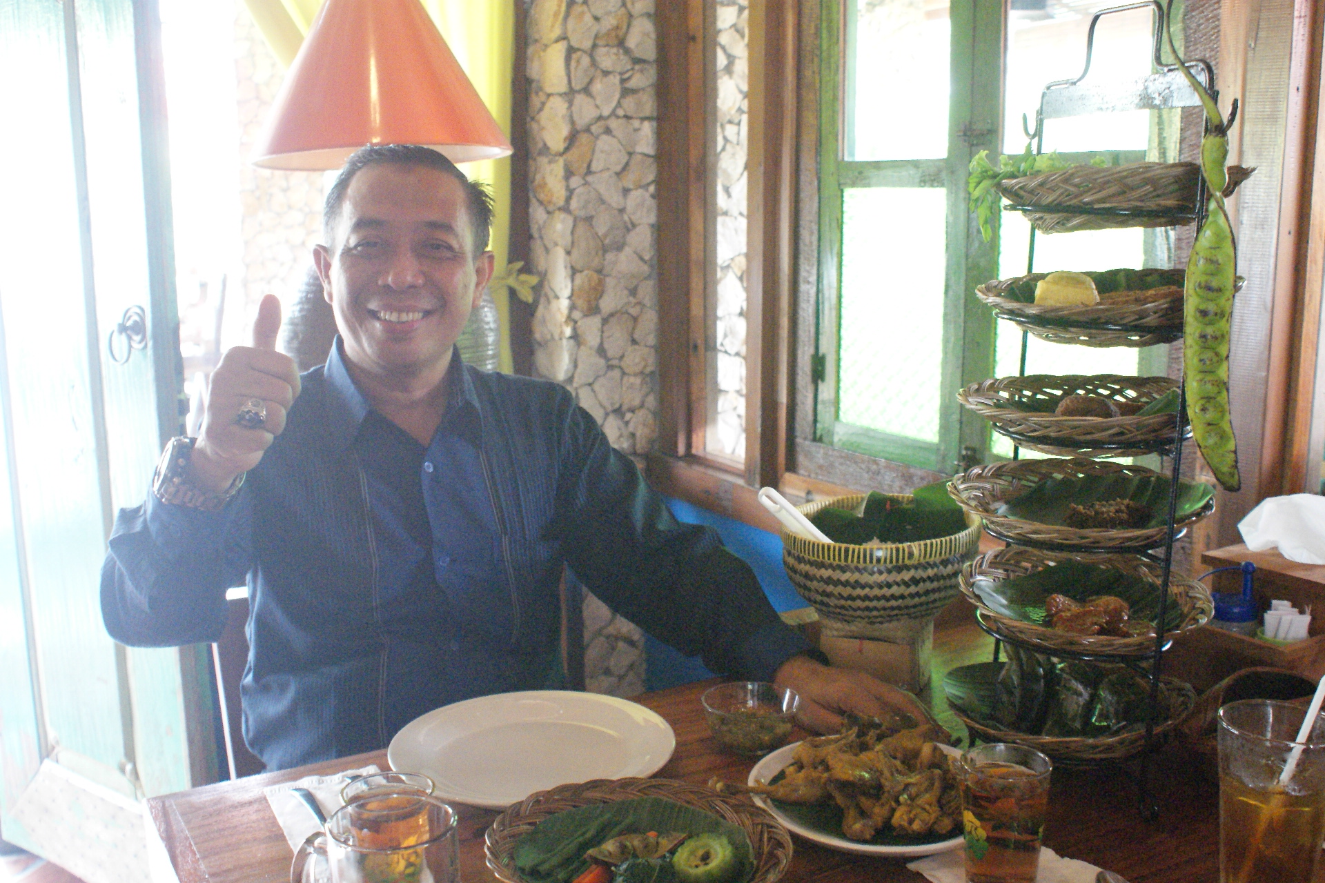 Anda akan merasakan nuansa berbeda ketimbang resto Sunda lainnya di Kabupaten Bekasi. Dengan disusun dengan besi bertingkat, anyaman lidi adan alas daun pisang terdapat berbagai lauk seperti jengkol balado, empal, tahu tempe,paru dan aneka pepes.