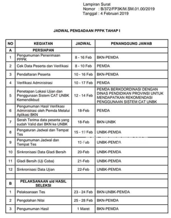 JAKARTA-Kementerian Pendayagunaan Aparatur Negara dan Reformasi Birokrasi (MenPAN-RB) akan menggelar seleksi Pegawai Pemerintah dengan Perjanjian Kerja (PPPK) atau pada 8 Februari 2019 sesuai dengan jadwal.