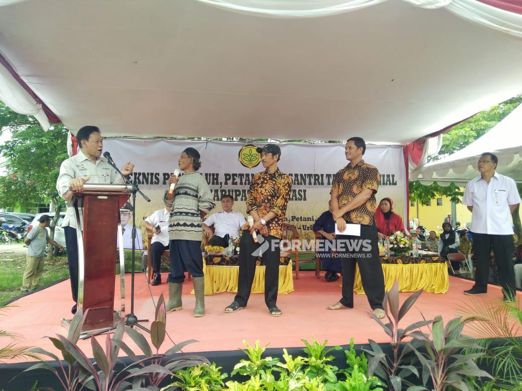 CIKARANG TIMUR – Kementerian Pertanian (Kementan) Republik Indonesia mengadakan kegiatan temu teknis seribu orang dari kalangan penyuluh, petani dan santri tani milenial di lapangan Kantor Kecamatan Cikarang Timur pada Selasa (12/3).