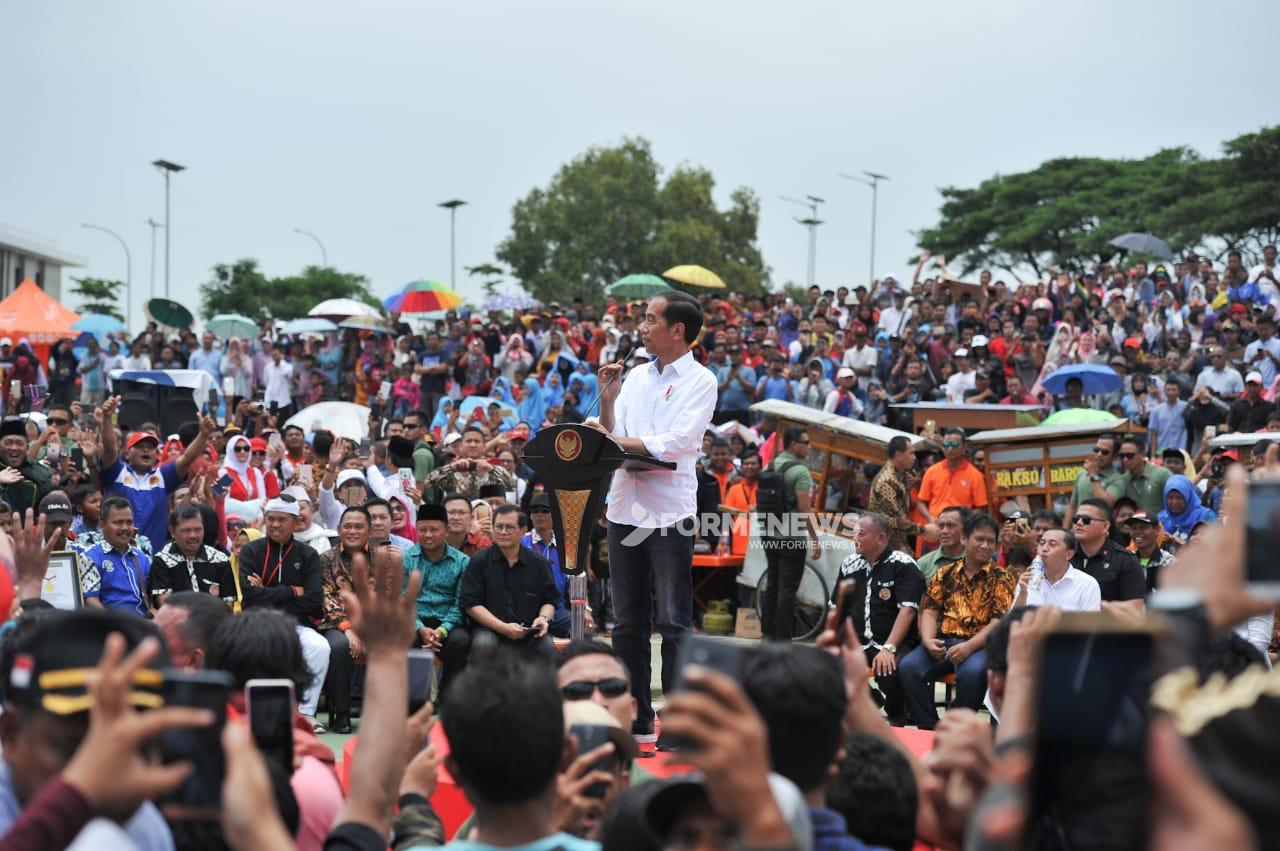CIKARANG PUSAT – Presiden Joko Widodo beserta ibu negara Iriana Joko Widodo menghadiri acara Gebyar Bakso Merah Putih Indonesia Bersatu. Acara ini dipusatkan di Lapangan Deltamas, Desa Hegarmukti, Kecamatan Cikarang Pusat, pada Minggu, (03/03/ 2019).