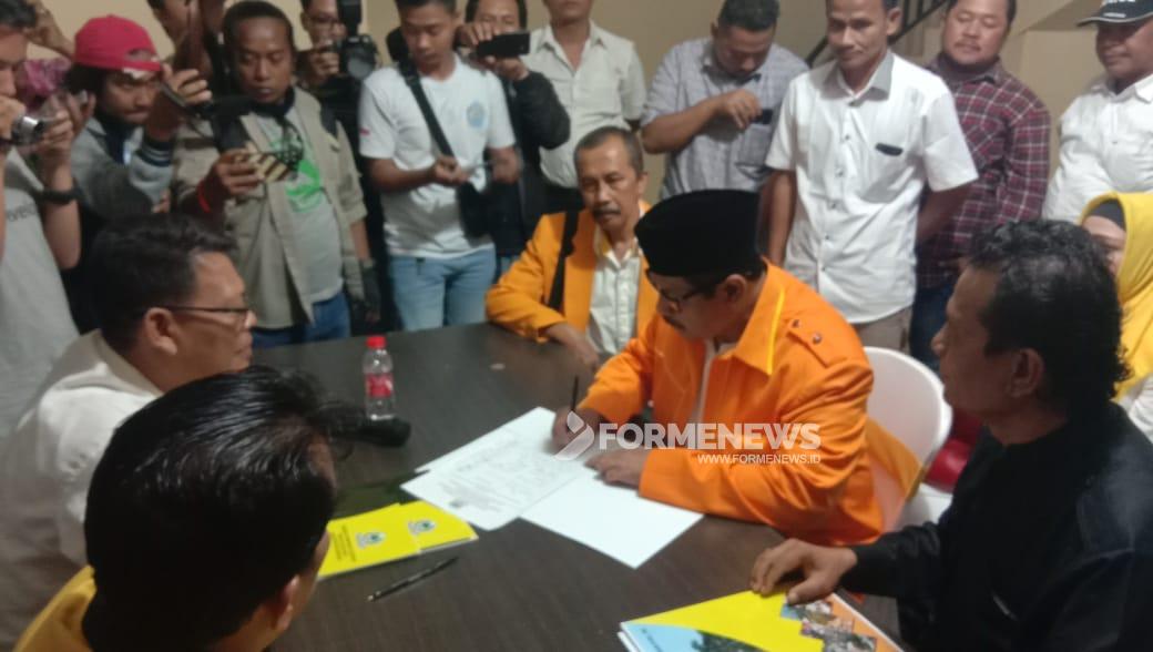 CIKARANG UTARA-Pengurus Kesatuan Organiasi Serbaguna Gotong Royong (Kosgoro), Akhmad Marjuki resmi mendaftar sebagai Calon Wakil Bupati (Wabup) Bekasi di Kantor DPD Golkar Kabupaten Bekasi, Jumat (28/6).