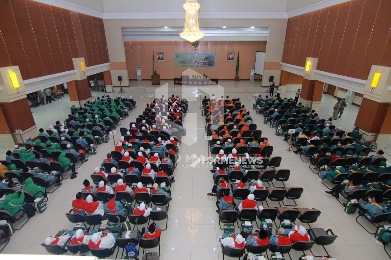 CIKARANG PUSAT-Bupati Bekasi, Eka Supria Atmaja melepas 410 jamaah haji kloter pertama asal Kabupaten Bekasi di Gedung Wibawa Mukti, Komplek Perkantoran Pemkab Bekasi, Senin (08/07) malam sekitar pukul 22.30 WIB.