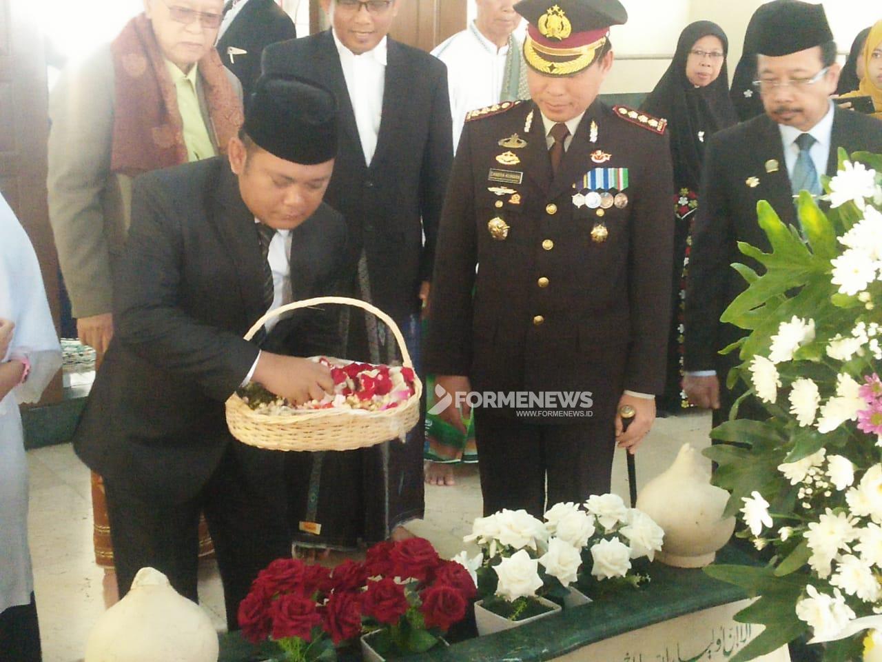Selesai upacara, Kapolres Metro Bekasi, Kombes Pol Candra Sukma Kumara didampingi Bupati Bekasi, Eka Supria Atmaja meletakan karangan bunga di makam KH Noer Alie dan diselingi upacara tabur bunga oleh unsur Forkopimda dan sejumlah pejabat lainnya.
