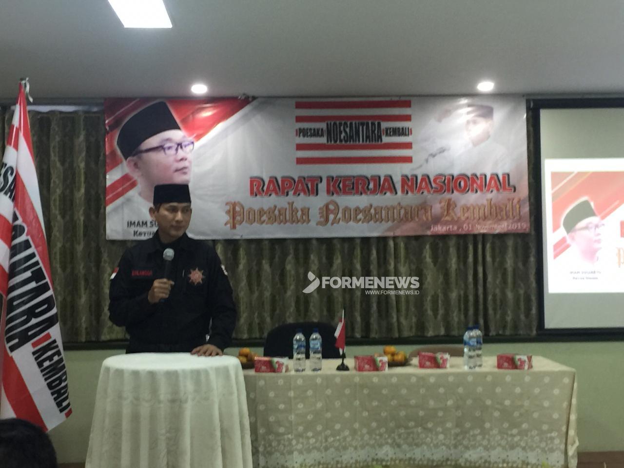 “Kembalikan kejayaan Nusantara, karena Nusantara itu punya pusaka dan semua anak bangsa harus tahu itu,”ujar dia pada acara Rakernas Poesaka Nusantara di Gedung HPN Kota Bekasi, Jumat (1/11/2019).