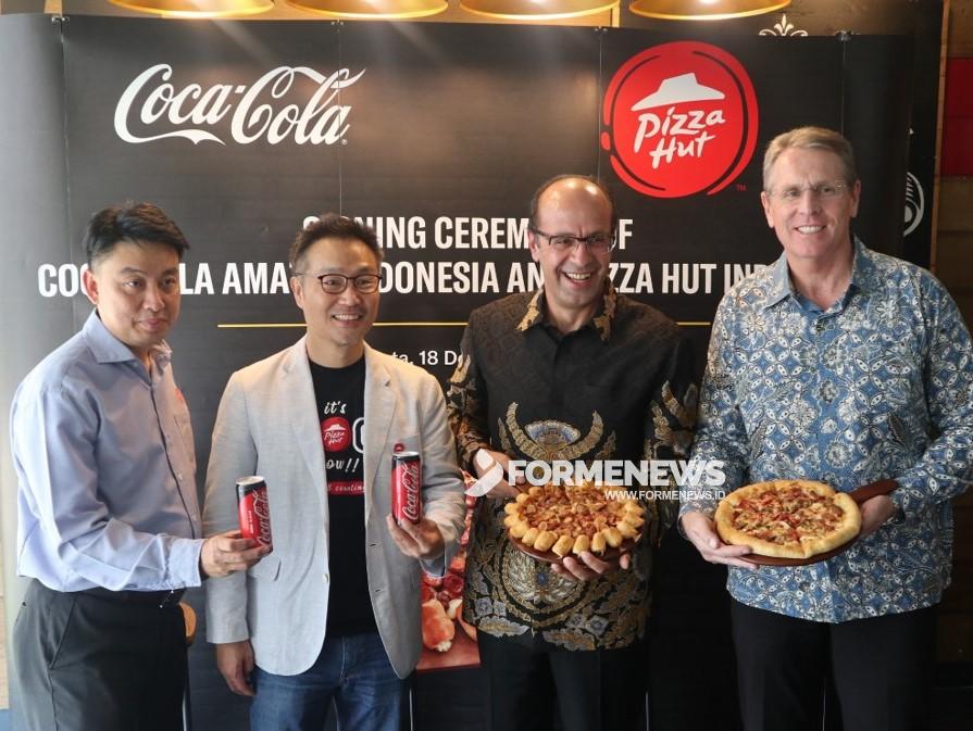 JAKARTA- Menutup Tahun 2019, Coca Cola Amatil Indonesia (Amatil Indonesia) mengumumkan kerja sama bisnis bersama Pizza Hut Indonesia, yang berlangsung hingga lima tahun ke depan. Melalui kolaborasi ini, jutaan masyarakat Indonesia akan dapat menikmati produk minuman ringan Coca-Cola, Fanta, Sprite, dan Frestea dengan berbagai menu lezat Pizza Hut Indonesia di 515 gerai Pizza Hut yang tersebar di seluruh Indonesia.