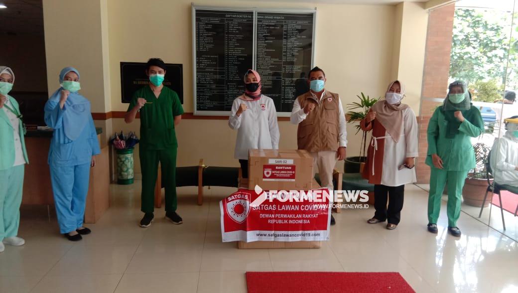 TAMBUN SELATAN- Anggota Komisi IX DPR-RI, Putih Sari menyambangi tiga rumah sakit di Kabupaten Bekasi, Kamis (21/5). Kehadiran Politisi Gerindra ini untuk memberikan Alat Pelindung Diri (APD)  untuk para tenaga medis dari Satuan Tugas (Satgas) Lawan Covid-19 DPR-RI.
