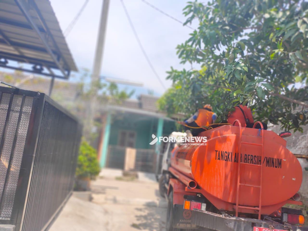 Kegiatan penyemprotan dilakukan oleh petugas BPBD Kabupaten Bekasi dengan mobil tanki berisi 2.000 liter, sekitar pukul 11:30 WIB siang hingga selesai.