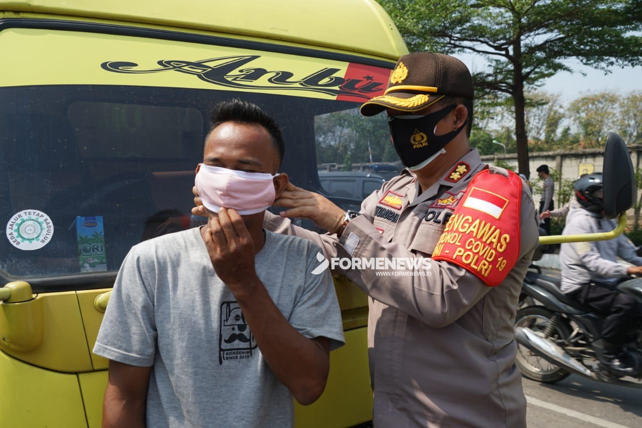 CIKARANG UTARA – Kepolisian Resort Metro Bekasi mengencarkan operasi pendisiplinan penggunaan masker kepada seluruh anggota serta masyarakat di Kabupaten Bekasi untuk meningkatkan kepatuhan pada protokol Covid-19.