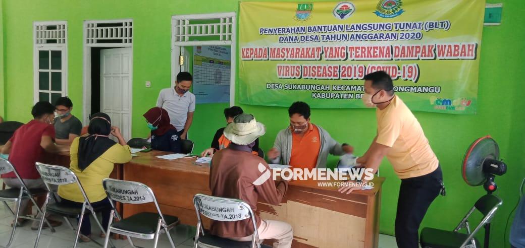 BOJONGMANGU – Sekitar 971 Kepala Keluarga (KK) dari Desa Sukabungah Kecamatan Bojongmangu Kabupaten Bekasi mendapat Bantuan Sosial Tunai (BST) dari Kementerian Sosial disalurkan oleh PT. Pos dan Giro Indonesia. Penyaluran bantuan tersebut untuk warga terdampak Covid-19 yang dilaksanakan di Aula Desa Sukabungah, Sabtu (17/10/20).