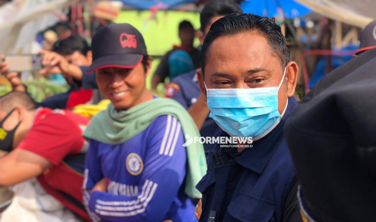 CIKARANG UTARA – Bupati Bekasi Eka Supria Atmaja bersama forum komunikasi pimpinan daerah meninjau pasar tradisional Cikarang di ruas Jalan Kapten Sumantri Cikarang Utara, pada Selasa (12/04/2021) pagi. Kehadiran Bupati Eka untuk memastikan stok dan harga kebutuhan pokok menjelang Ramadhan 1442 Hijriah.
