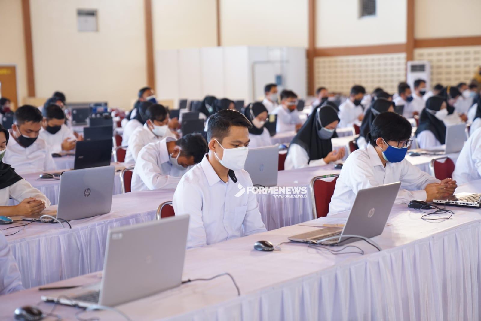 BANDUNG – Sebanyak 574 Calon Aparatur Sipil Negara (CASN) Kabupaten Bekasi menjalani Tes Seleksi Kompetensi Dasar (SKD) Tahun 2021 di hari pertama di Telkom University Convention Hall, Bandung, Kamis (16/9/2021).