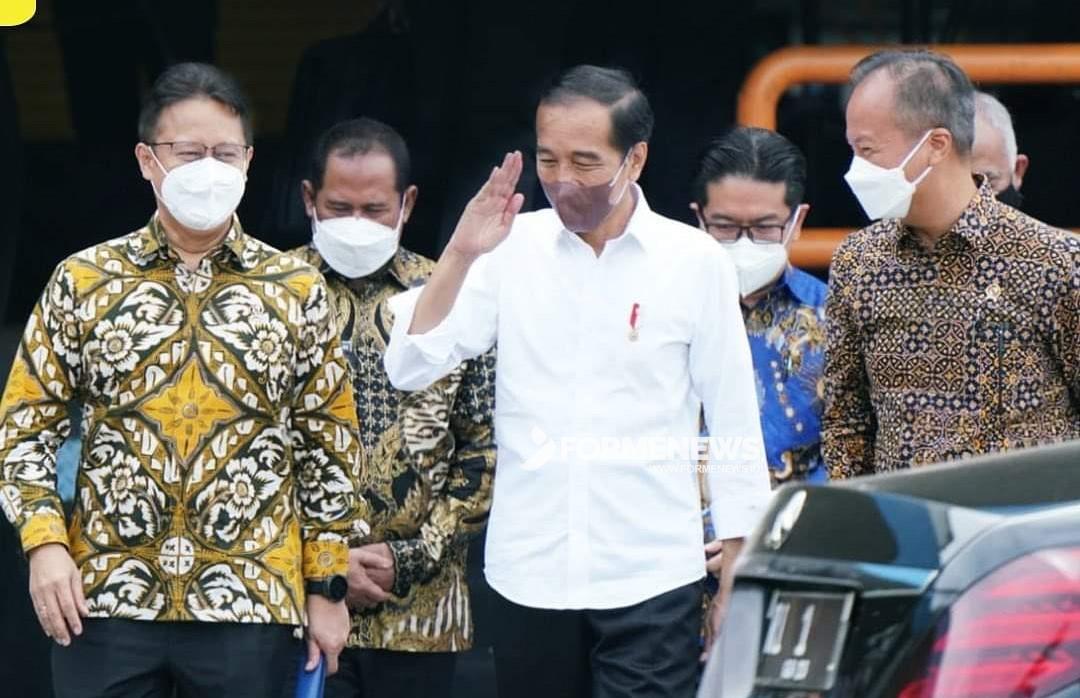 TARUMAJAYA – Plt. Bupati Bekasi, Akhmad Marjuki mendampingi Presiden Republik Indonesia, Joko Widodo, meninjau pelaksanaan vaksinasi Covid-19 dosis ketiga atau booster untuk di PT. Sinarmas Marunda Plant Agribusiness and Food (SMART), Kawasan Marunda Center, Tarumajaya pada Kamis (24/02/2022).