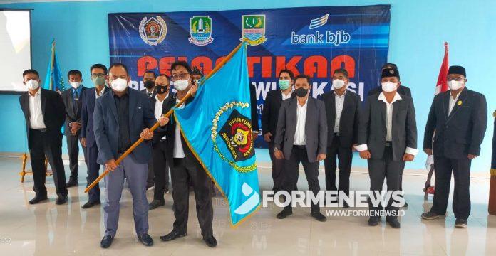 BANDUNG – Pengurus Persatuan Wartawan Indonesia (PWI) Bekasi Raya dilantik dan dikukuhkan Ketua PWI Jawa Barat, Hilman Hidayat di Gedung Biru, Bandung Jawa Barat, Senin (21/03/2022).