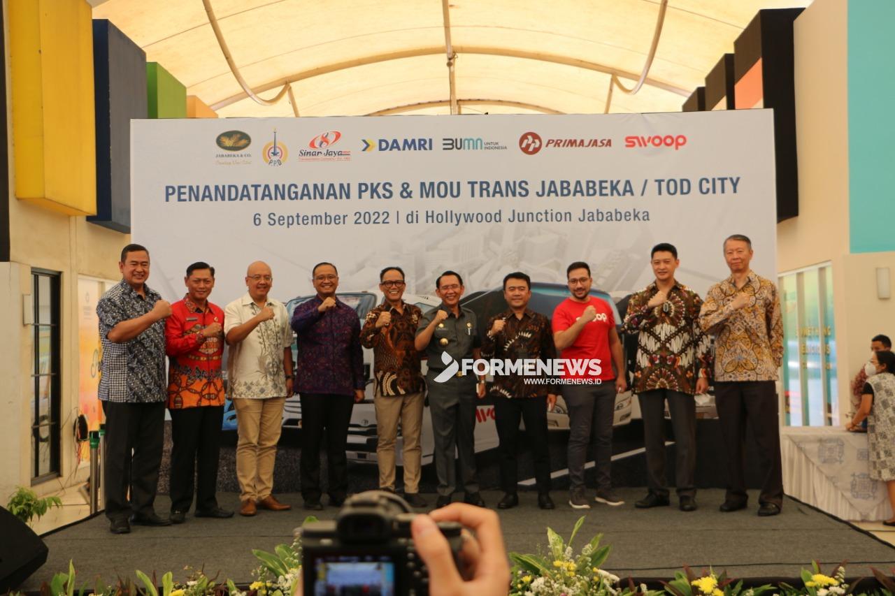 Penandatanganan perjanjian kerja sama dilakukan oleh Agung Wicaksono selaku Managing Director PT Jababeka Infrastruktur dengan Dadan Rudiansyah selaku Direktur Komersial dan Pengembangan Usaha DAMRI, Bambang Suryo Susakti selaku Direktur Operasional dan Pemasaran Perum PPD, Brigjen.Pol(P). Dr.Drs. Muh. Elia WM. S.H.,M.M.,Adv. selaku Direktur Sumber Daya Manusia Sinar Jaya. Sementara penandatanganan MoU dilakukan oleh Agung Wicaksono dengan Michael Geric selaku Co-Founder Swoop terkait peningkatan aksesibilitas ke Kota Jababeka.