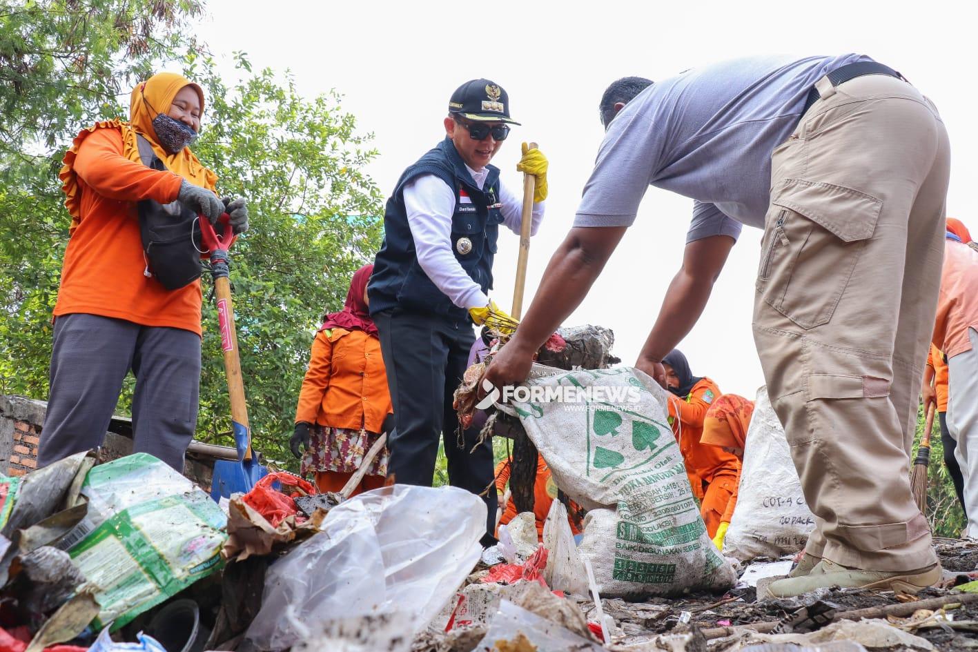 CIKARANG SELATAN – Pj Bupati Bekasi melakukan aksi bersih-bersih sampah pada kegiatan gotong royong TNI-Polri di Jalan Gemalapik, Pasirkonci, Desa Sukasari, Kecamatan Cikarang Selatan pada Jumat (04/11).