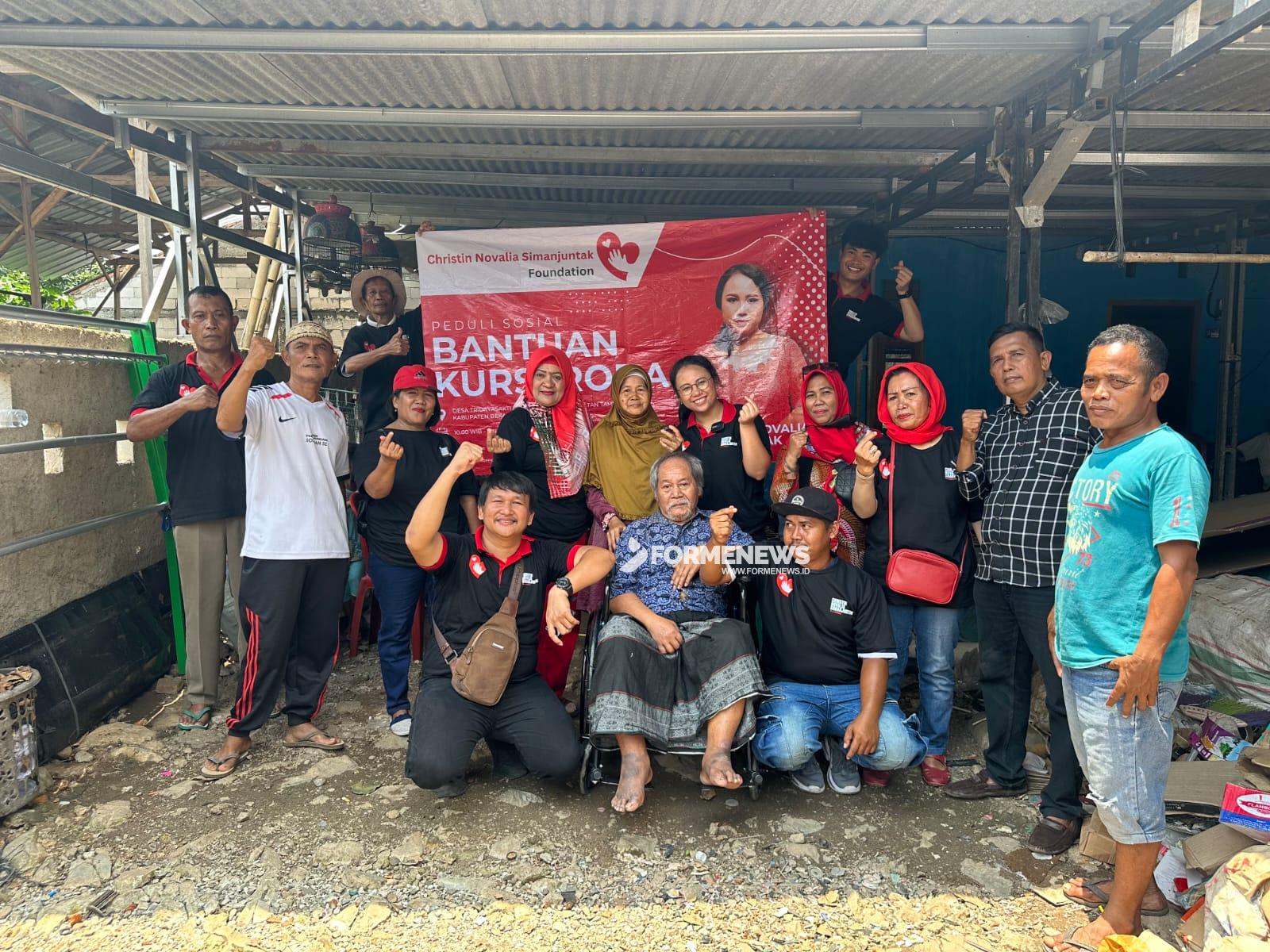 Dalam aksi sosial tersebut Yayasan Christin Novalia Simanjuntak mengakhiri kegiatan dengan membagikan kursi roda kepada warga yang membutuhkan di Desa Sumberjaya dan Tridaya Sakti yang bernama Umi Fadilah dan Amir. (dre/amh)