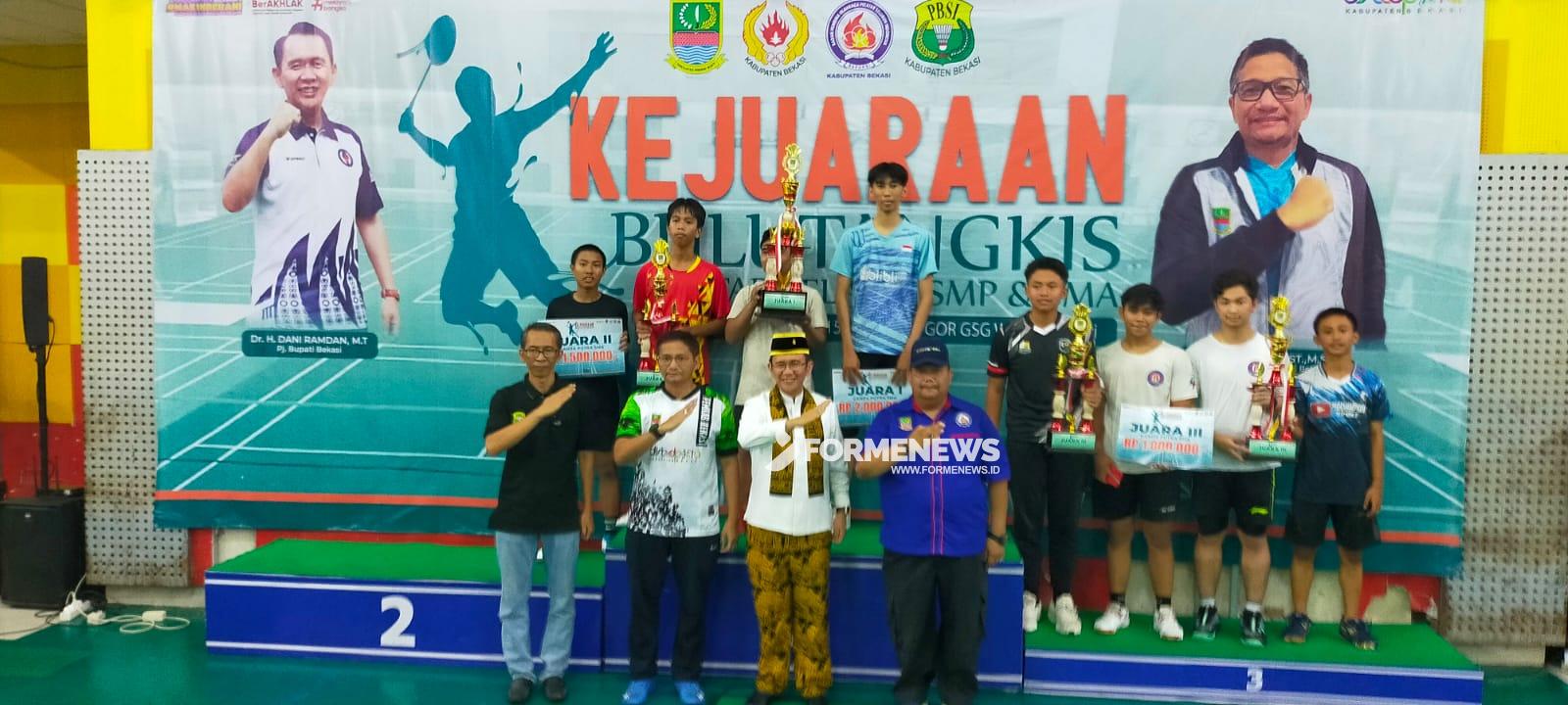 CIKARANG TIMUR – Pj Bupati Bekasi Dani Ramdan secara resmi menutup Kejuaraan Bulu Tangkis Antar Pelajar SMP dan SMA tahun 2023 di GOR Bulutangkis Stadion Wibawa Mukti Cikarang, pada Jumat (16/06/2023).