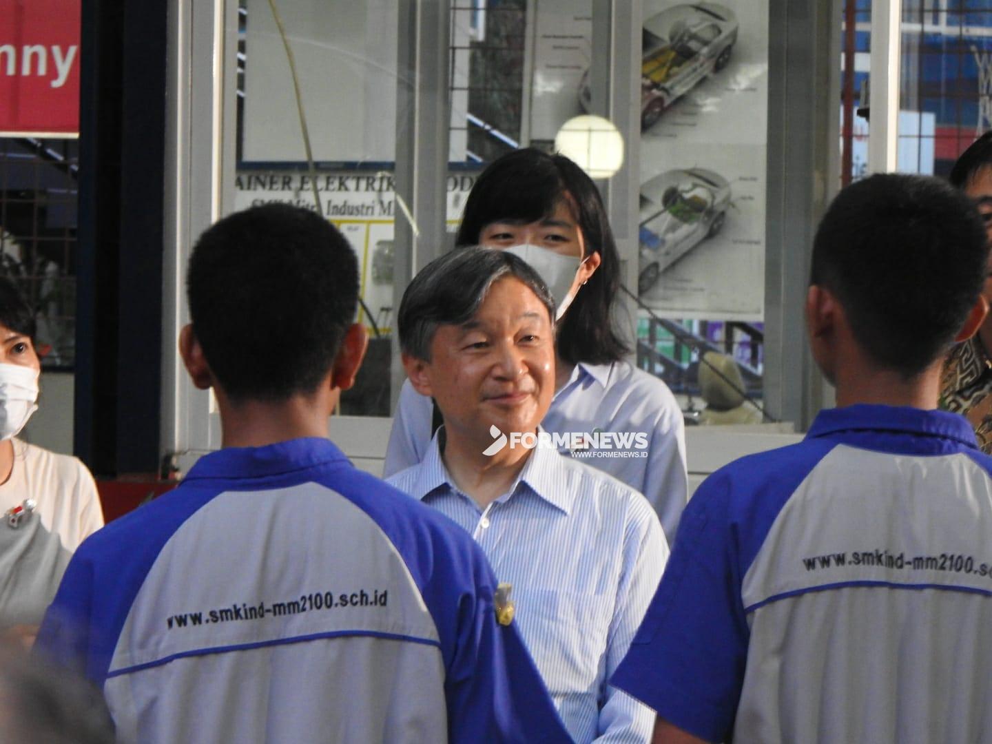 CIKARANG BARAT – Hari ketiga lawatannya ke Indonesia, Kaisar Jepang Naruhito bersama Permaisuri Masako mengunjungi SMK Mitra Industri di Kawasan MM2100 Kecamatan Cikarang Barat, Kabupaten Bekasi, pada Selasa (20/06/2023).