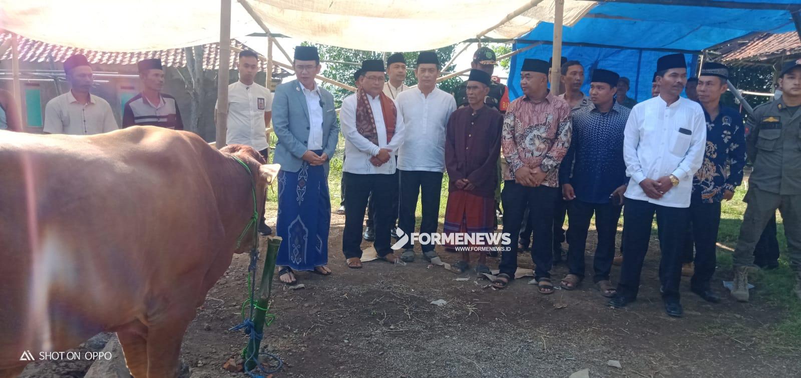 Pj Bupati Bekasi Serahkan Hewan Kurban untuk Warga Desa Ridomanah