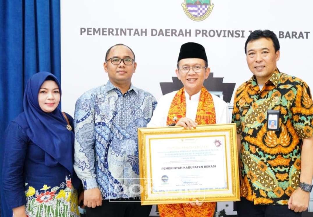 Penghargaan tersebut diterima langsung oleh Pj. Bupati Bekasi, Dani Ramdan pada acara Penganugerahan Predikat Kepatuhan Standar Pelayanan Publik tingkat Provinsi Jawab Barat Tahun 2023, di Aula Gedung Sate, Kota Bandung, pada Jumat (22/12/2023).
