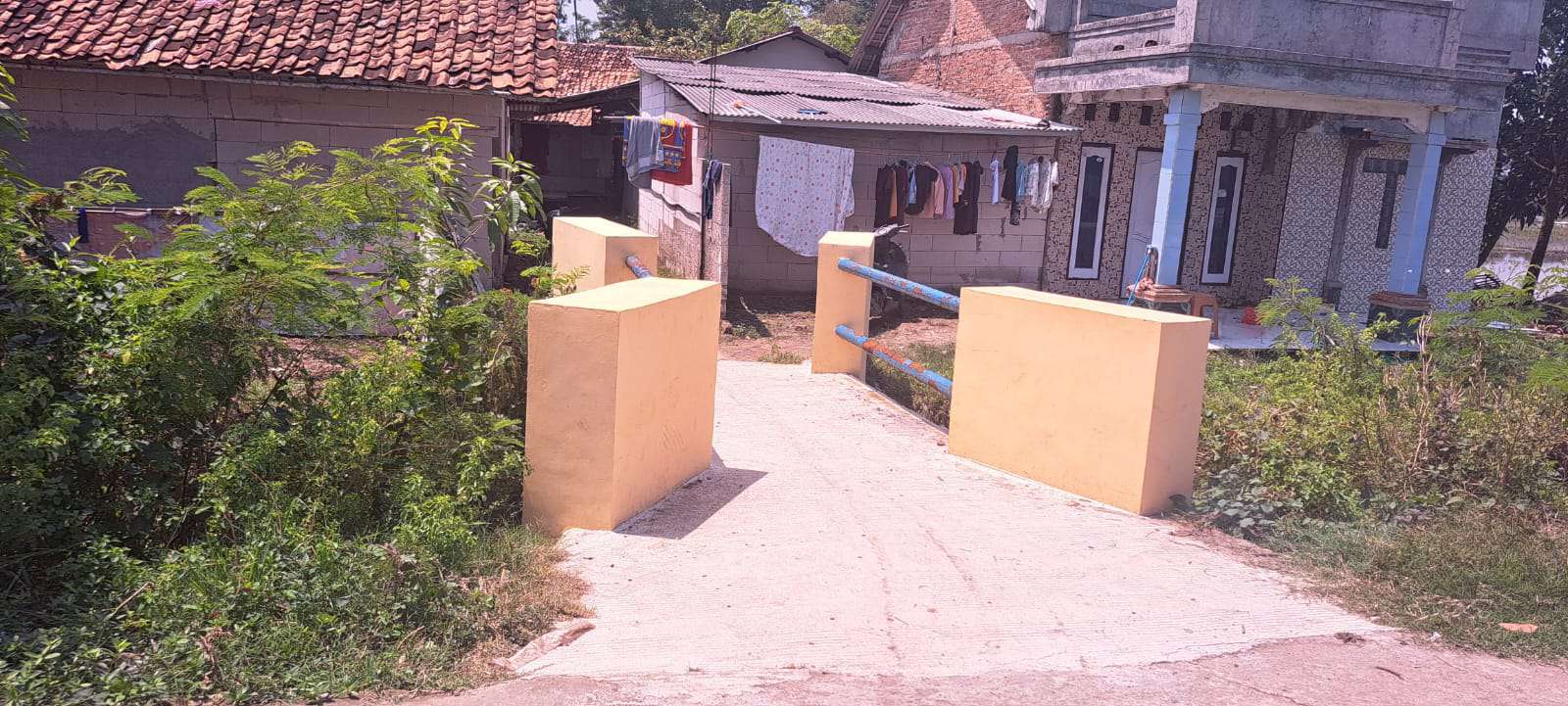 Salah satu warga setempat, Andi, juga membenarkan bahwa pegangan jembatan yang dibangun hanya menggunakan pipa paralon, bukan besi sebagaimana mestinya.