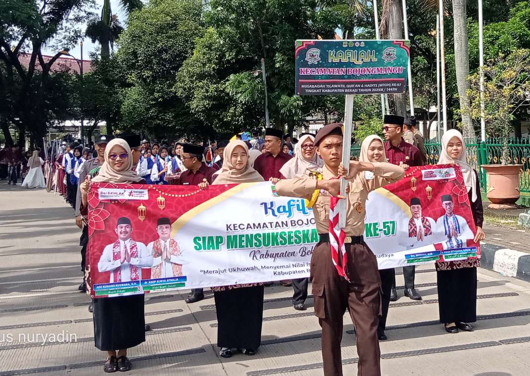 BEKASI, Tarumanegaranews.id – Kafilah Kecamatan Bojongmangu mengirimkan 18 peserta untuk mengikuti Musabaqoh Tilawatil Qur’an dan Hadits (MTQH) Ke-57 Tingkat Kabupaten Bekasi tahun 2025. Kegiatan tersebut digelar di Kantor Pemerintah Kabupaten Bekasi, Senin (17/11/2025).