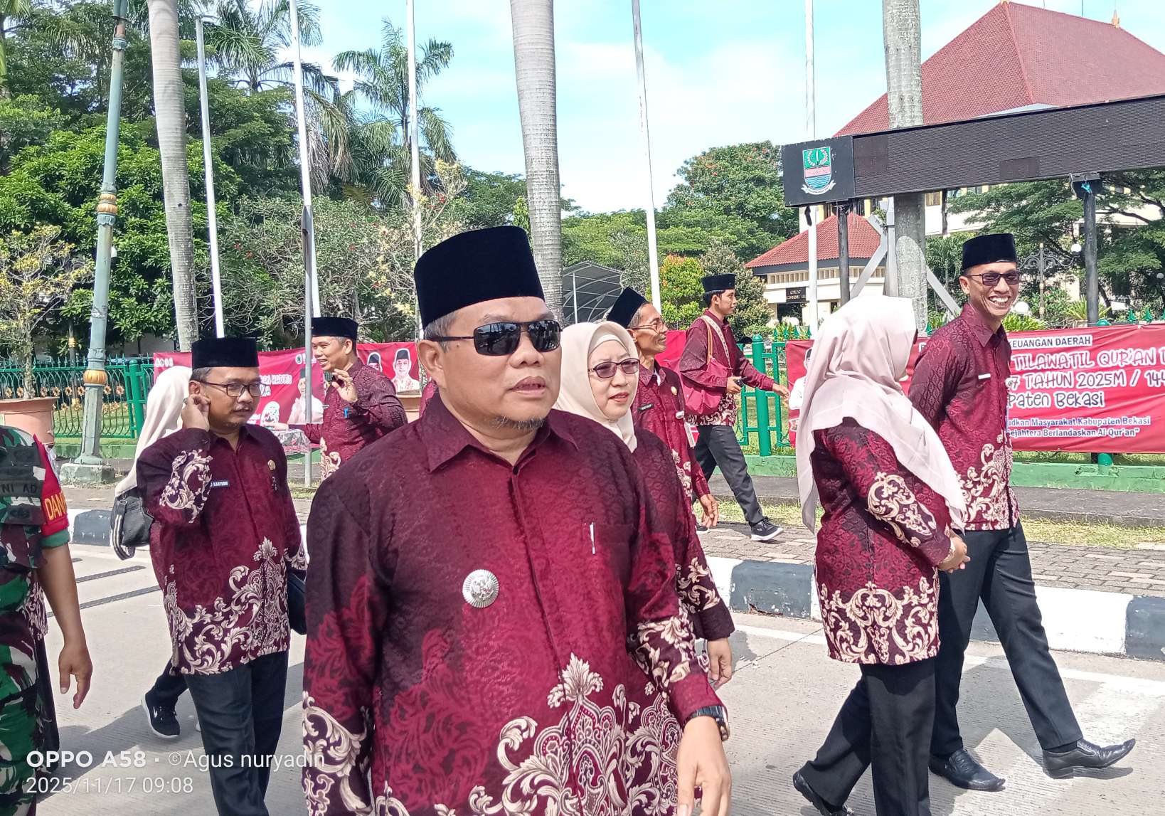 Dengan gaya bahasa kiasan yang hangat, ia juga menggambarkan ketegangan sekaligus kebanggaan saat rombongan melangkah di hadapan Bupati Bekasi.