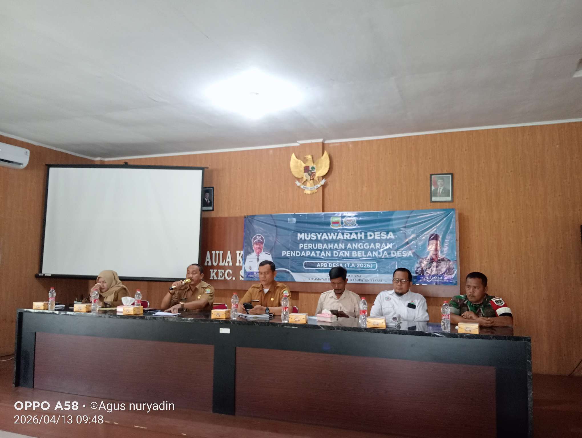 SERANG BARU, Tarumanegaranews.id – Badan Permusyawaratan Desa (BPD) bersama Pemerintah Desa Jayasampurna menyelenggarakan Musyawarah Desa (Musdes) terkait Perubahan Anggaran Pendapatan dan Belanja Desa (APBDes) Tahun Anggaran 2026. Kegiatan ini berlangsung di Aula Desa Jayasampurna, Kecamatan Serang Baru, pada Senin (13/4/2026).