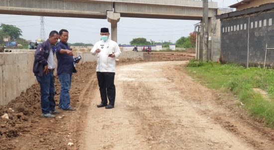 CIBITUNG – Lurah Wanasari, Kecamatan Cibitung, Sarkum meninjau langsung lokasi jalan yang