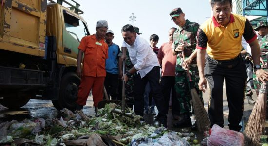 PEMERINTAH Kabupaten (Pemkab) Bekasi melakukan aksi memungut sampah di Kawasan Pasar Cikarang,